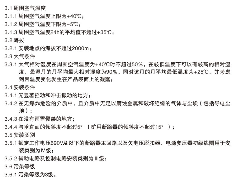 3、正常工作条件及安装条件