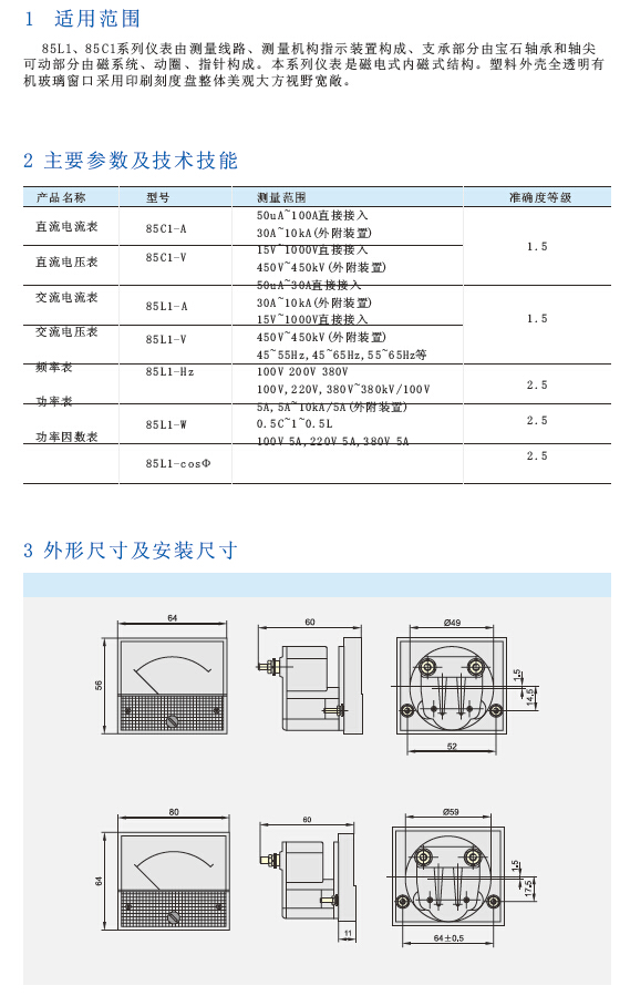 85L1、85C1系列电流、电压表