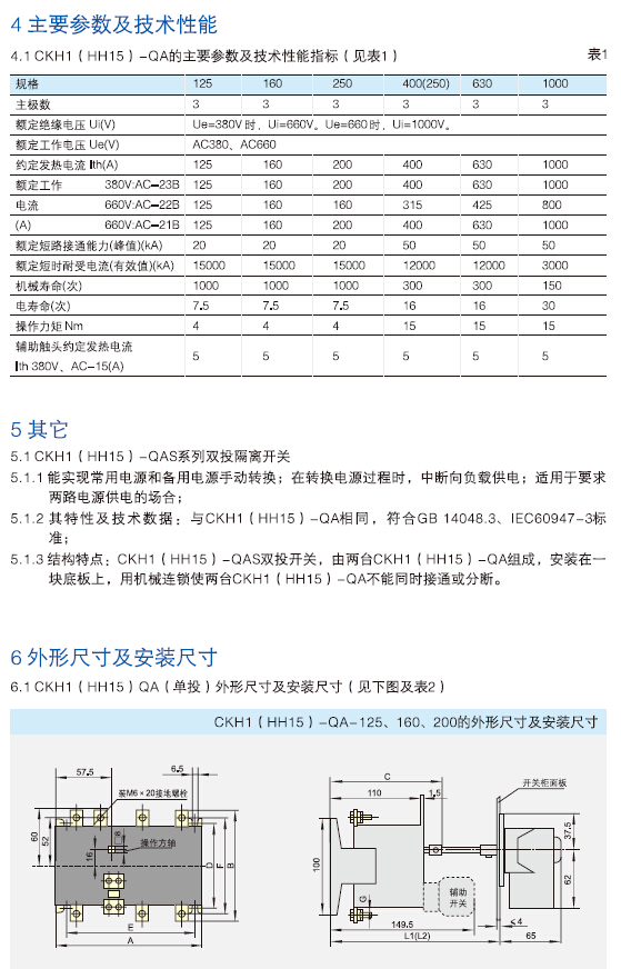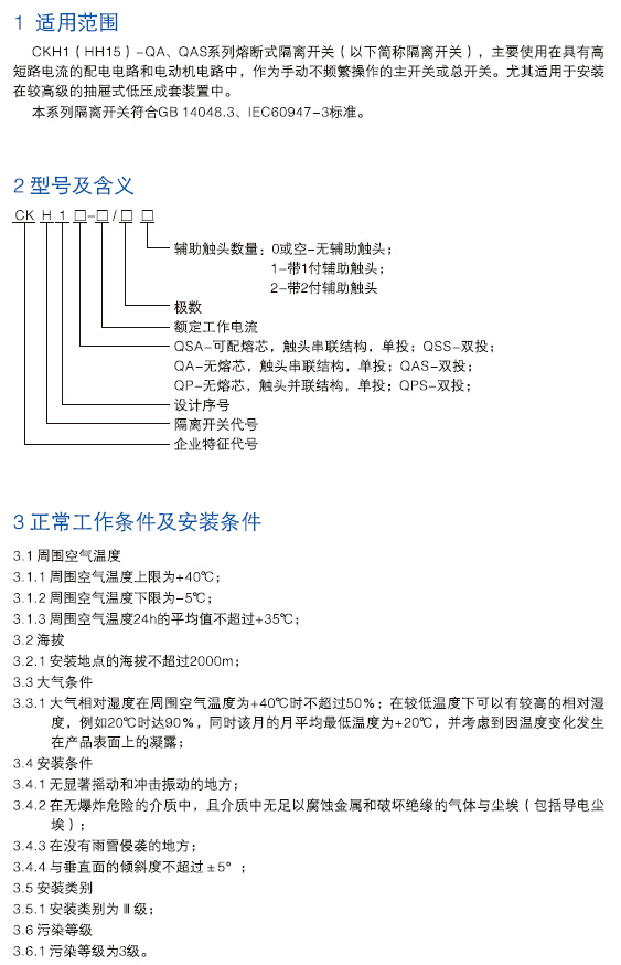 CKH1(HH15)-QA、QAS隔离开关